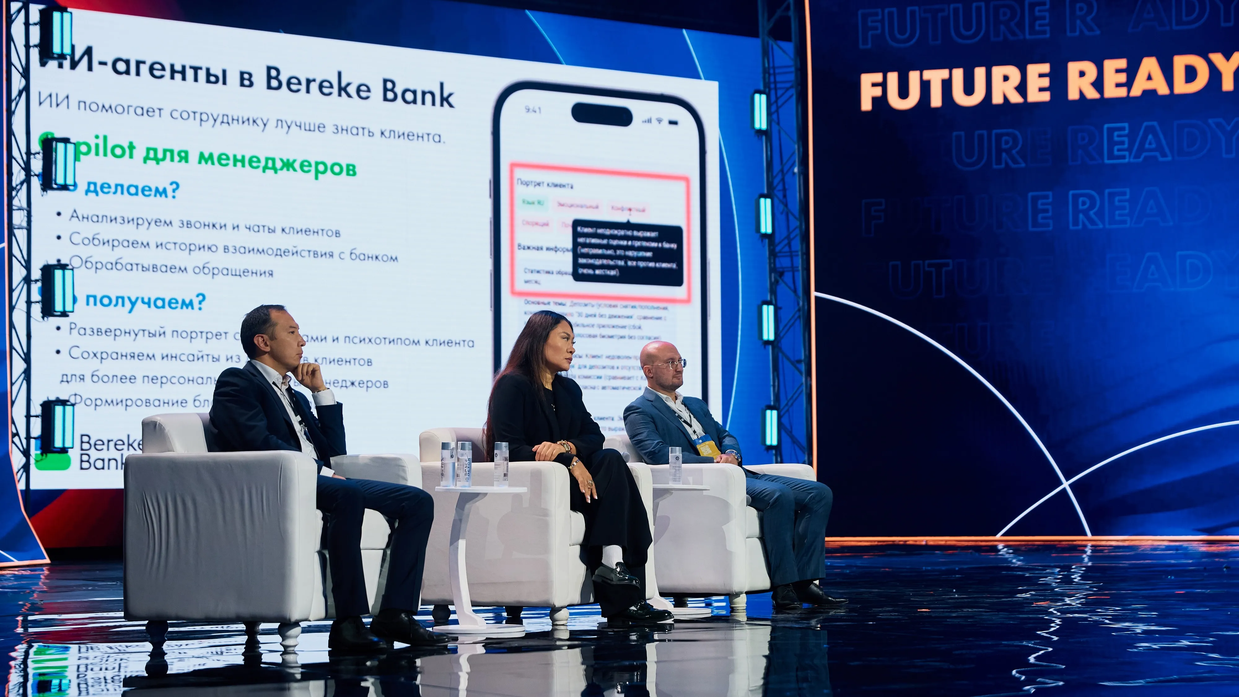 Форумда айтылған негізгі трендтердің бірі – банктік шешімдерді гипердербестендіру. Bereke Bank клиенттің нақты өмірлік жағдайын – отбасылық өмірін, саяхатын немесе кәсіпкерлік қызметін ескере отырып, арнайы өнімдер жасайды.