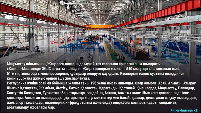 Республика күніне орай бүкіл еліміз бойынша ірі өнеркәсіптік кәсіпорындардан бастап әлеуметтік, спорттық және инфрақұрылымдық жобаларға дейін 196 жаңа нысан пайдалануға беріледі, деп хабарлайды Zakon.kz.