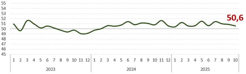 "2025 жылғы қазанда іскерлік белсенділік индексі 50,6 (қыркүйекте 50,9) болды. Индикатор 2024 жылғы наурыздан бері оң аймақта тұр". Рүстем Оразалин