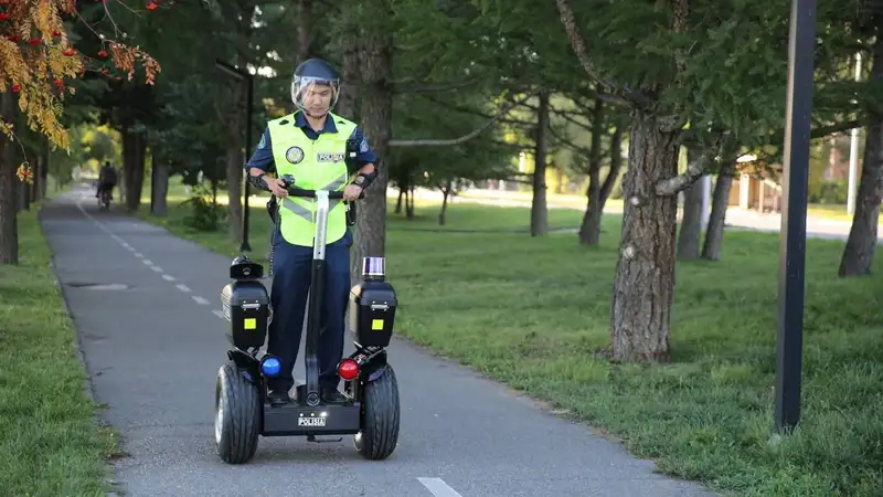 "Батарея қуатымен жұмыс істейтін Segway полицияға арналған StreetSmart мүмкіндіктерімен, соның ішінде сирена және жыпылықтайтын шамдармен жабдықталған". ҚР ІІМ баспасөз қызметі