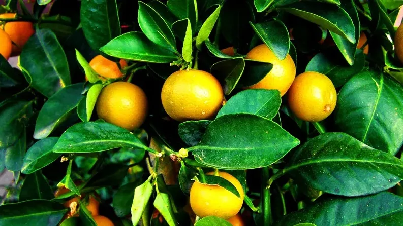 Бұл ретте, Бас Ботаникалық бақтың жылыжайында Сопақ кумкват немесе Нагами өседі (Fortunella margarita (Lour.) Swingle).