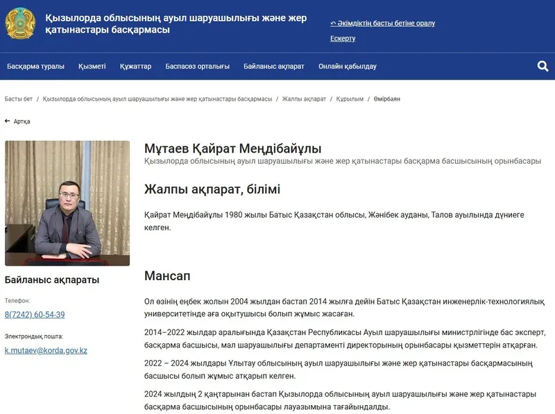 Айта кетейік, Қайрат Мұтаев 2022 жылдан 2024 жылға дейін Ұлытау облысының Ауыл шаруашылығы және жер қатынастары басқармасының басшысы қызметін атқарған. Ал 2024 жылдың 2 желтоқсанынан бастап Қызылорда облысының Ауыл шаруашылығы және жер қатынастары басқармасы басшысының орынбасары болып тағайындалды.
