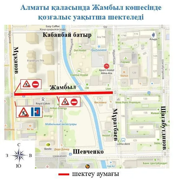 Осыған байланысты 2025 жылдың 24 шілдесінен 31 тамызына дейін Алмалы ауданында Жамбыл көшесі бойынша Мұқанов көшесінен Мұратбаев көшесіне дейінгі аралықта автокөлік қозғалысы жабылады.