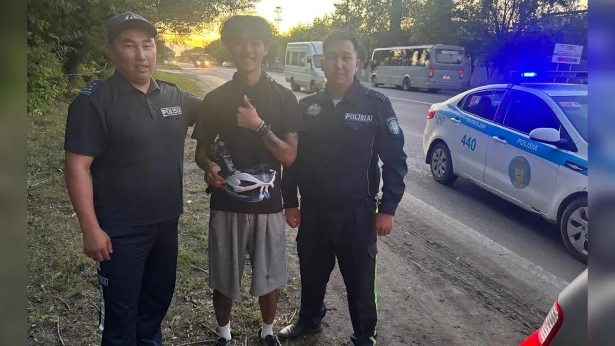 Тәртіп сақшылары Даулет Сапаров пен Шыңғыс Яхияев қонаққа қол ұшын созып, велосипеді мен заттарын патрульдік көлікке тиеп, оны қаладан шығарып салды. Сондай-ақ туристке ас-ауқат ұсынып, әрі қарайғы бағыт-бағдарын көрсетіп жіберді.