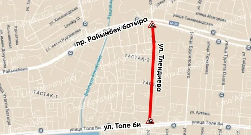 "Қозғалыс Райымбек батыр даңғылынан Төле би көшесіне дейінгі аралықта тоқтатылады", - деп хабарлады мегаполис әкімдігі.