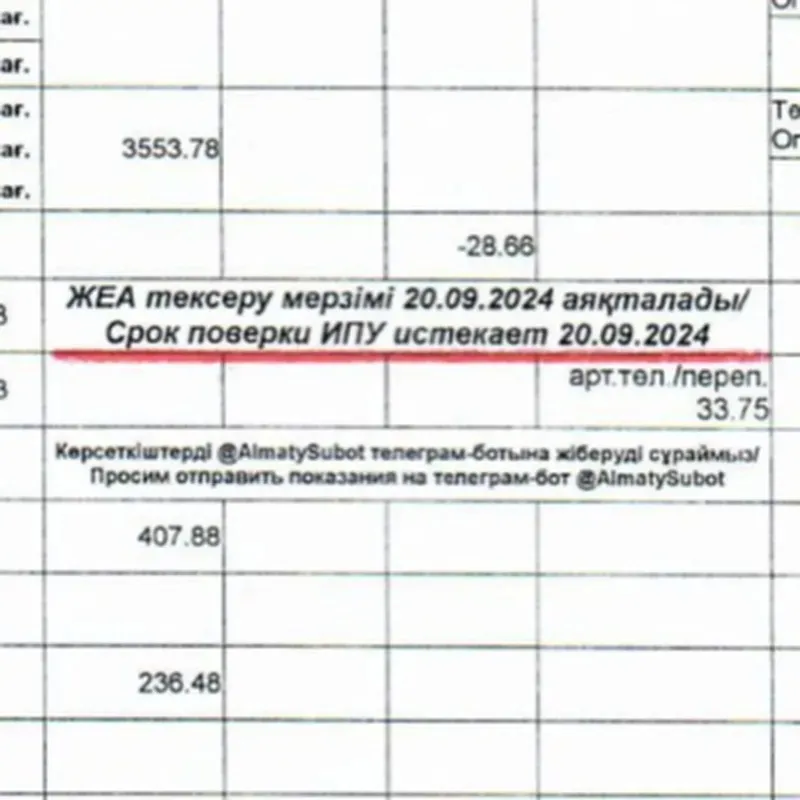"Алайда, осыған қарамастан, "АлЖЖ" ЖШС абонентті тексеру мерзімінің аяқталғаны туралы хабардар ету үшін барлық мүмкін шараларды қабылдайды. Тексеру күнінен үш ай бұрын тұтынушыға "Алсеко" түбіртегінде хабарланады.Мерзімін өткізіп алу себебінен ЫСЖ ЖЕА пайдаланудан алып тастау кезінде абонентке шот-хабарламада хабарланады",- делінген ақпаратта.