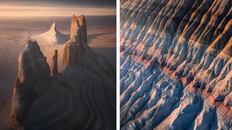"Қазақстанның сюрреалистік пейзаждары. Бұл керемет аймақ теңіз деңгейінен 70 м/230 фут төменде орналасқан", деп жазды сурет астына фотограф.