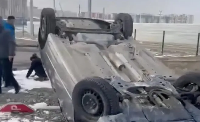 Шымкентте жүргізуші куәлігін алу емтиханы кезінде автокөлік аударылып кеткен