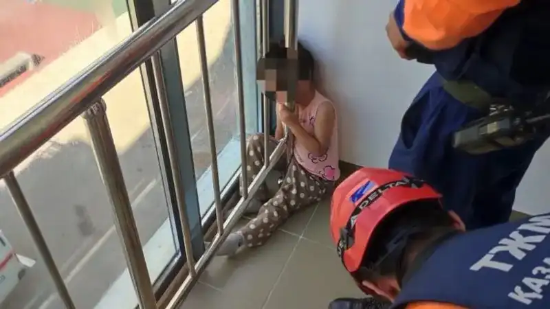 Астанада балкондағы темір арасына басы қысылып қалған қыз бала құтқарылды