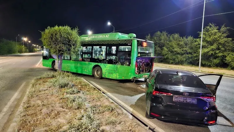 Zakon.kz тілшісінің мәліметінше, соқтығыс сәтінде автобус бұрылып жатқан. Сол сәтте Toyota Corolla маркалы автокөлік жоғары жылдамдықпен келіп, қоғамдық көліктің артқы бөлігіне соғылған.