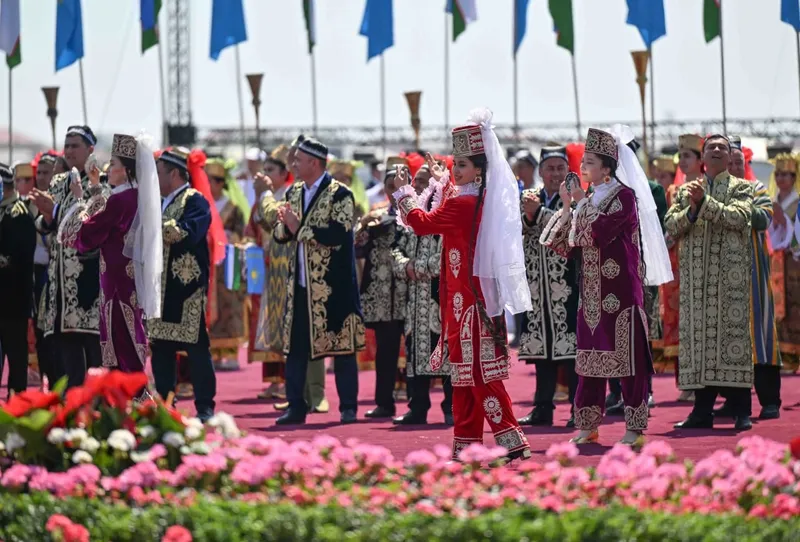 Салтанатты қарсы алу рәсімінде Қазақстан президентінің құрметіне ұлттық ән мен би орындалды.