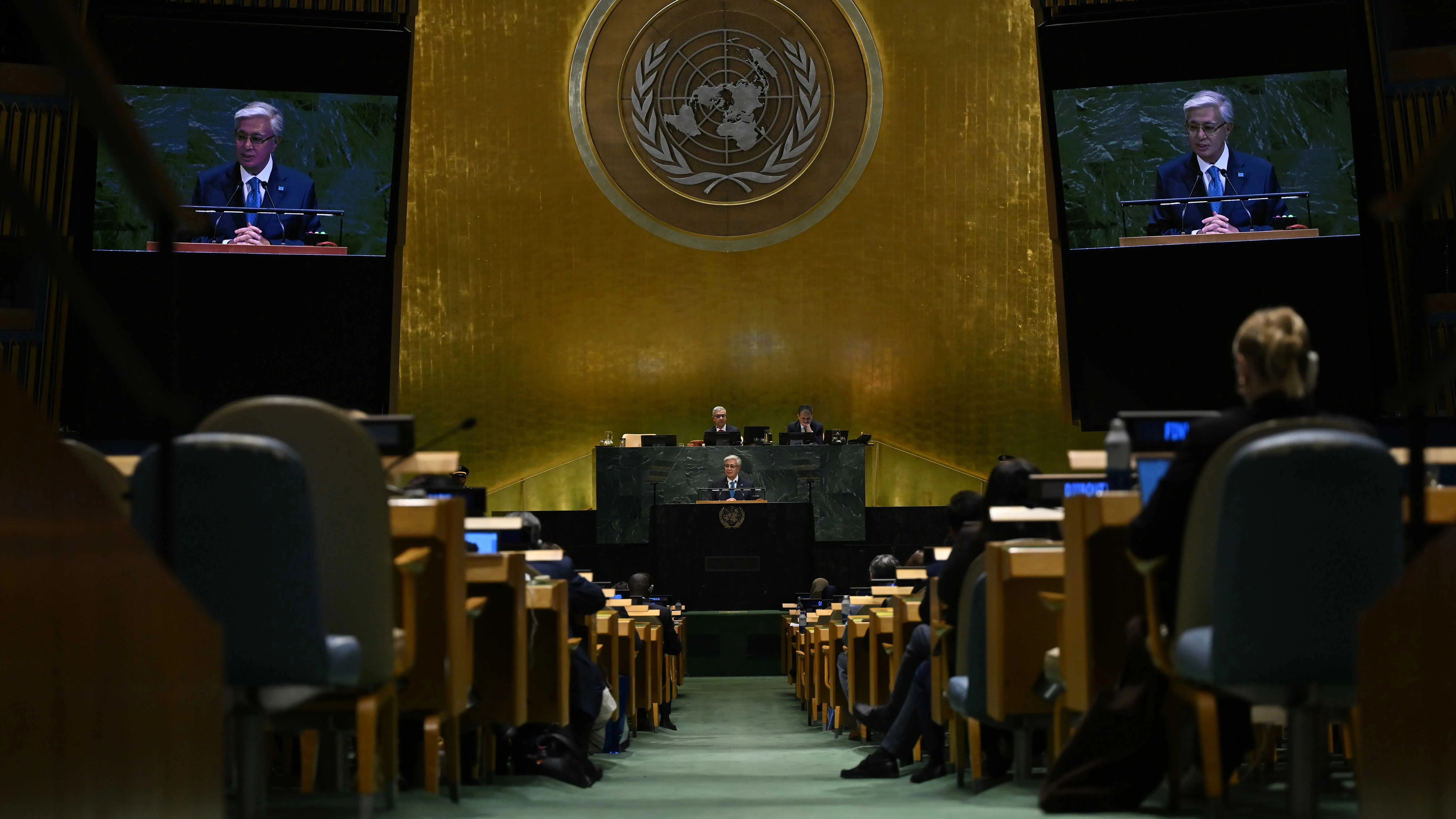 Қазақстан Республикасының Мемлекеттік кеңесшісі Ерлан Қариннің айтуынша, БҰҰ Бас Ассамблеясының мерейтойлық сессиясында Мемлекет басшысы Қасым-Жомарт Тоқаев маңызды сөз сөйлеп, жаһандық күн тәртібі жөніндегі өз көзқарасын білдірді, деп хабарлайды Zakon.kz.