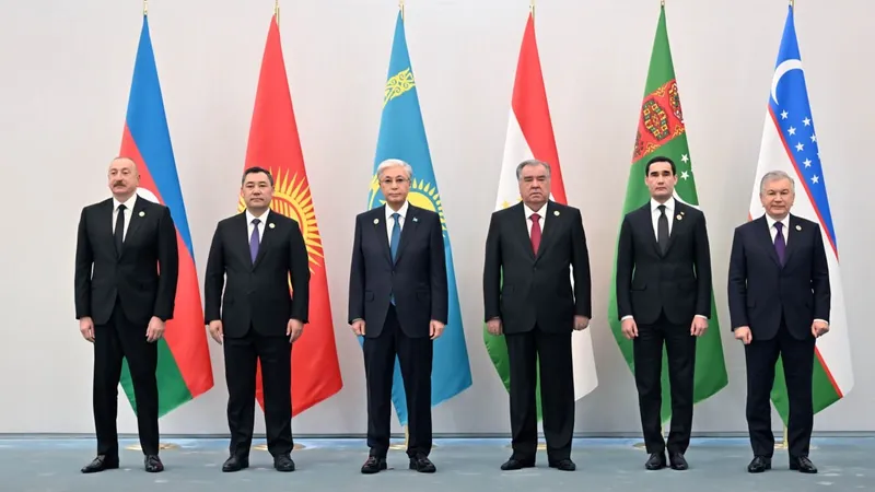 Орталық Азия мемлекеттерінің басшылары Ташкенттегі VII Консультативтік кездесуі алдында бірге суретке түсті.